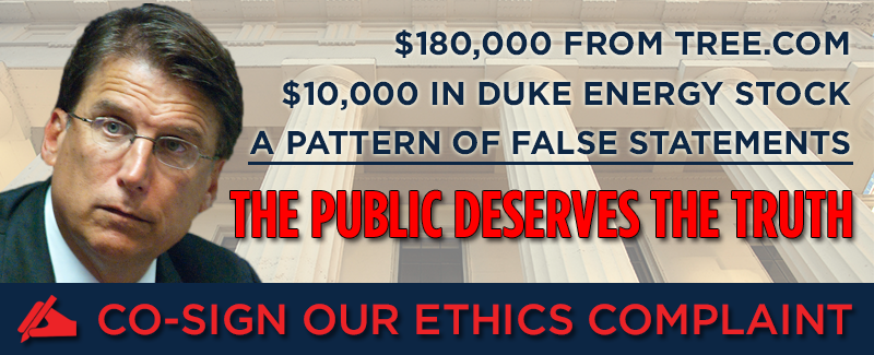 We simply want to know what is really going on here and why the Governor has repeatedly failed to disclose income and stocks. Please review our complaint and open an investigation into Governor McCrory.